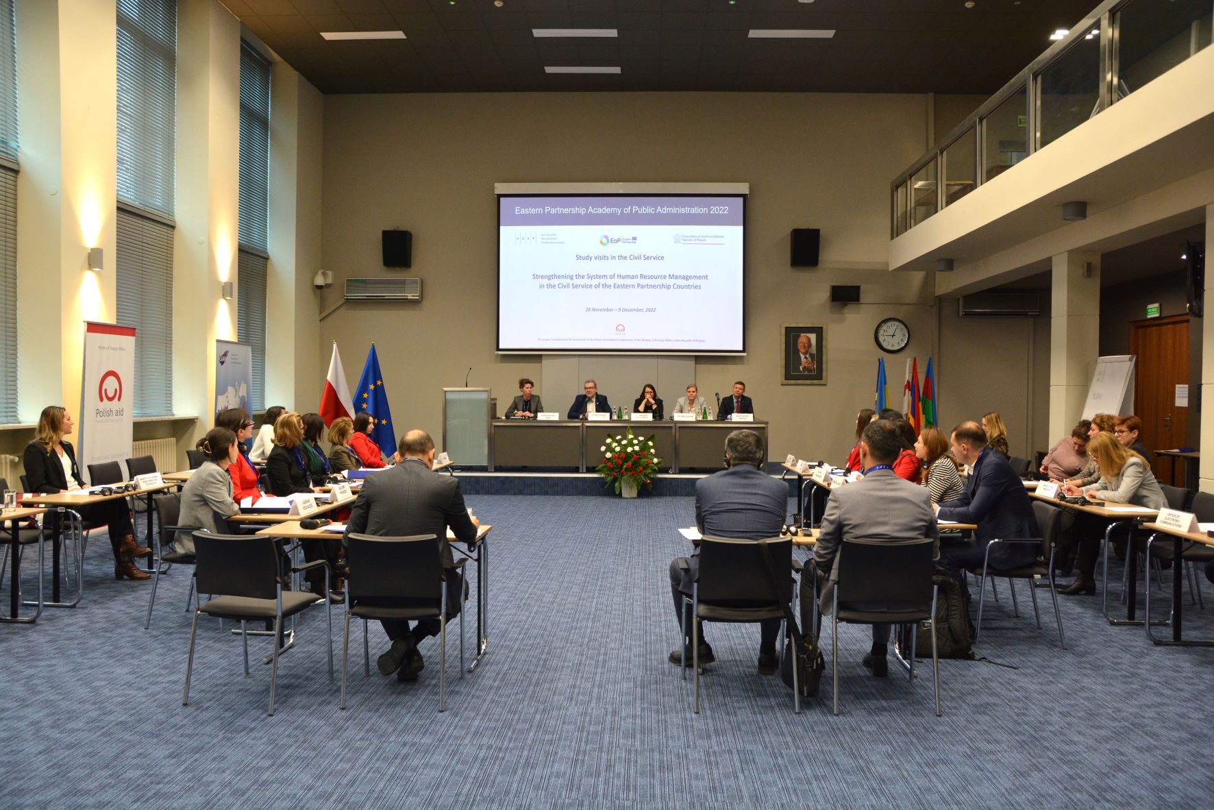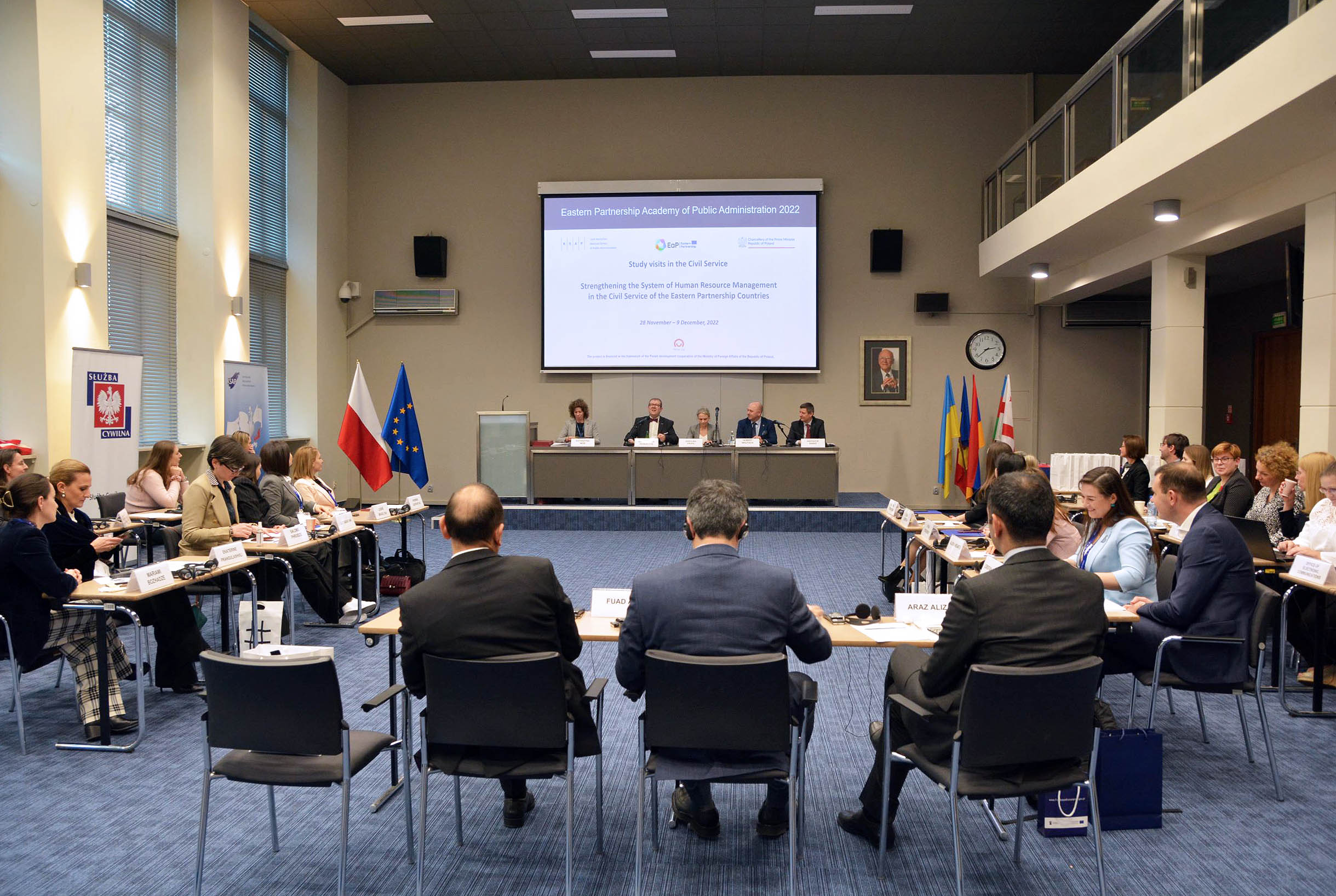 W dniach od 28 listopada do 9 grudnia 2022 r. realizowany jest piąty, ostatni moduł w tegorocznej, XII edycji Akademii Administracji Publicznej Partnerstwa Wschodniego – “Wizyty studyjne w służbie cywilnej. Wzmocnienie systemu zarządzania zasobami ludzkimi w służbie cywilnej krajów Partnerstwa Wschodniego”.