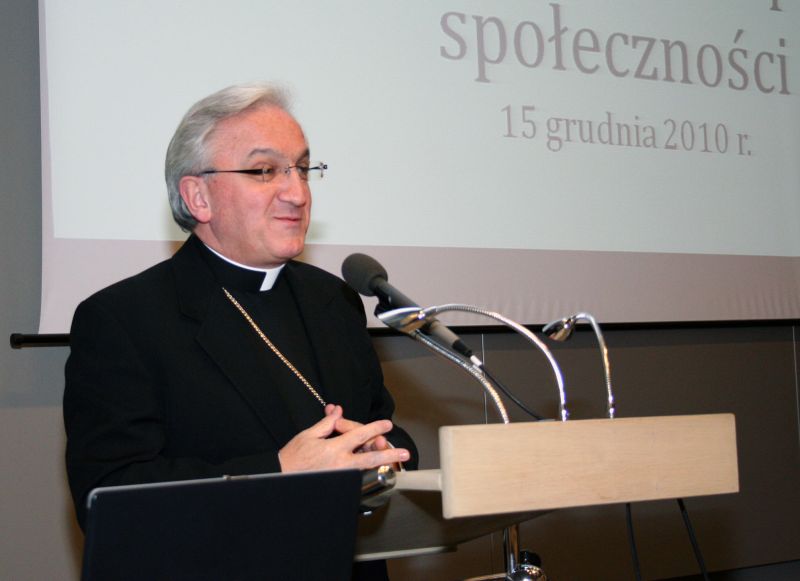 W trakcie dyskusji słuchacze poprosili Gościa o krótki komentarz dotyczący sytuacji w polskim Kościele oraz o podzielenie się osobistą refleksją na temat wpływu Kościoła na tworzenie prawa w państwie. Wskazał, że różnice w opiniach pomiędzy przedstawicielami polskiego Episkopatu są wyrazem zasady wolności i nie powinny budzić niepokoju społecznego. Debata, w której padają zdania odrębne służy sankcjonowaniu tego co słuszne w postępowaniu człowieka oraz korygowaniu tego co jest niewłaściwe. W odniesieniu do drugiego z postawionych pytań, Gość podkreślił, że Kościół powinien być ponad podziałami partyjnymi i nie angażować się w sferę działań świeckich. Nie mniej jednak, biorąc pod uwagę, że duchowni i urzędnicy państwowi służą tym samym ludziom, Kościół powinien wspierać dobre z punktu widzenia interesów całego społeczeństwa inicjatywy. Jego Ekscelencja przytoczył przykład pomocy powodzianom i działanie Caritasu, który niósł pomoc równolegle do pomocy świadczonej przez administrację publiczną, wspierając ją i uzupełniając dla dobra poszkodowanych, ale nie będąc jednocześnie jej posłańcem.