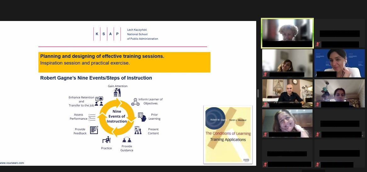 Sesja online „Train the Trainer” ma na celu integrację zespołu trenerów gruzińskich oraz zdefiniowanie roli trenera w projekcie i jego relacji z grupą oraz omówienie wybranych metod i narzędzi szkoleniowych. Trenerzy gruzińscy będą współpracować z trenerami polskimi, w czasie sesji stacjonarnych, wspólnie budując kulturę otwartości na nowe kompetencje i wiedzę wśród uczestników. Docelowo trenerzy z Gruzji będą przejmować w następnych edycjach projektu prowadzenie zajęć w modułach tematycznych, wymienionych powyżej.