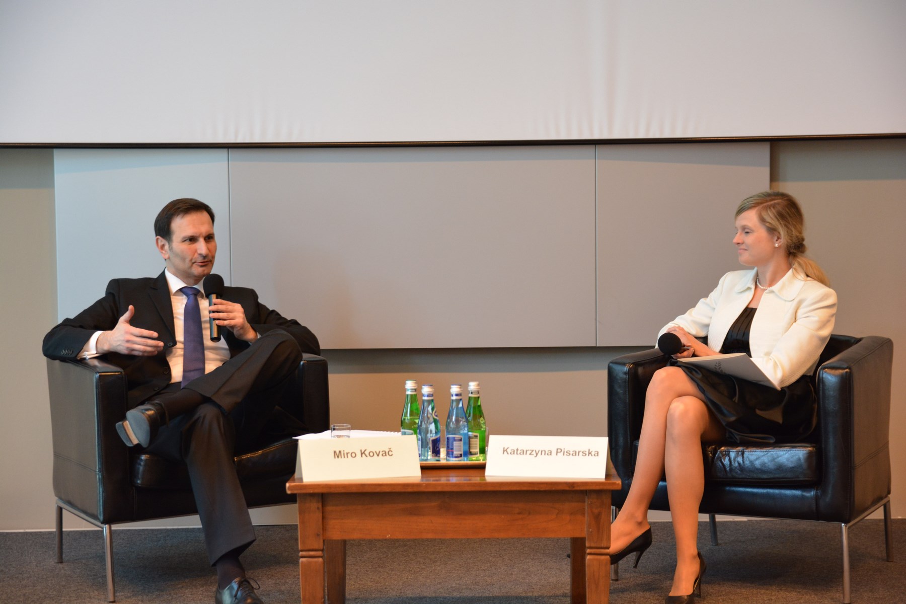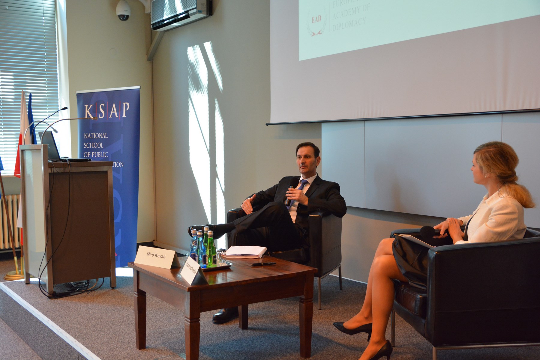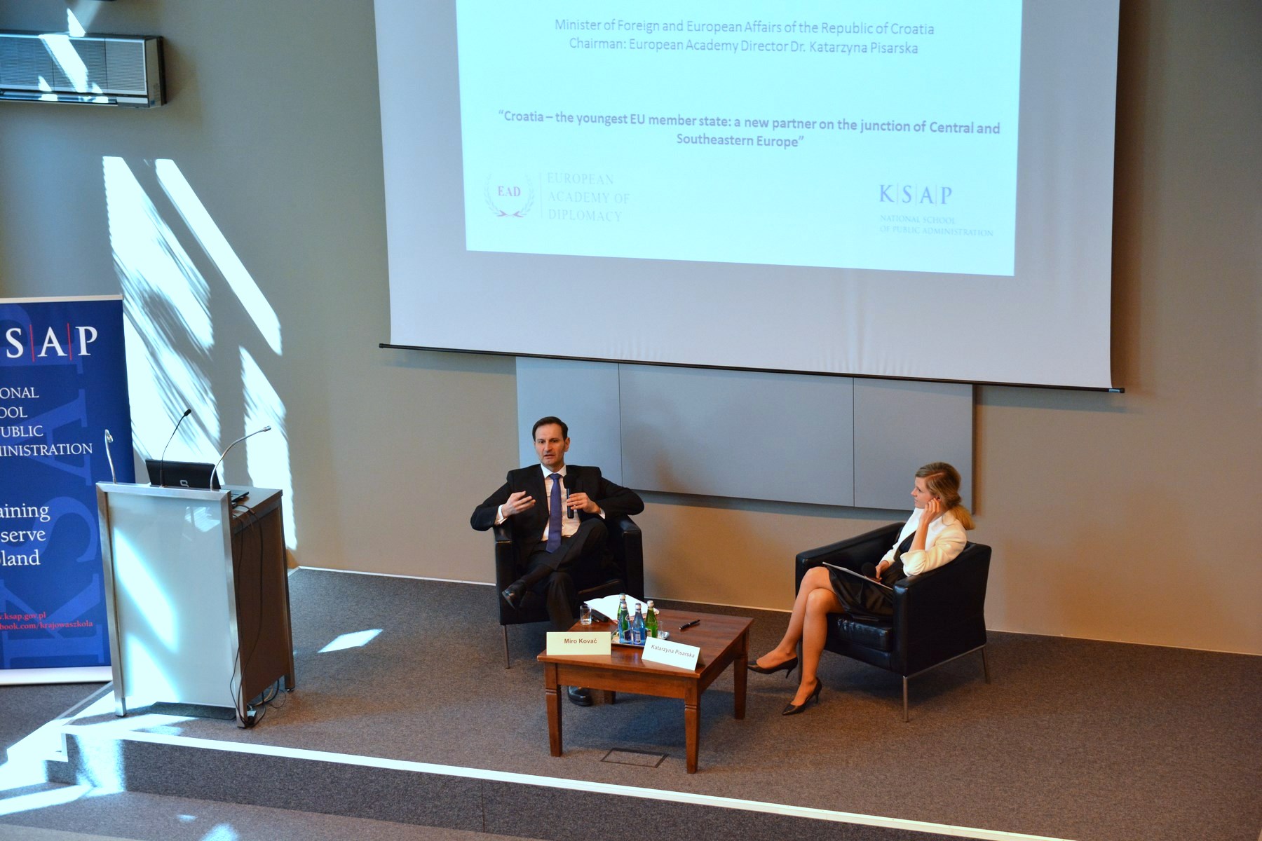 Na fotelach przy stole prezydialnym siedzi Minister Spraw Spraw Zagranicznych Chorwacji Pan Miro Kovač oraz Katarzyna Pisarska, Dyrektor EAD, a na widowni zgoradzeni goście.