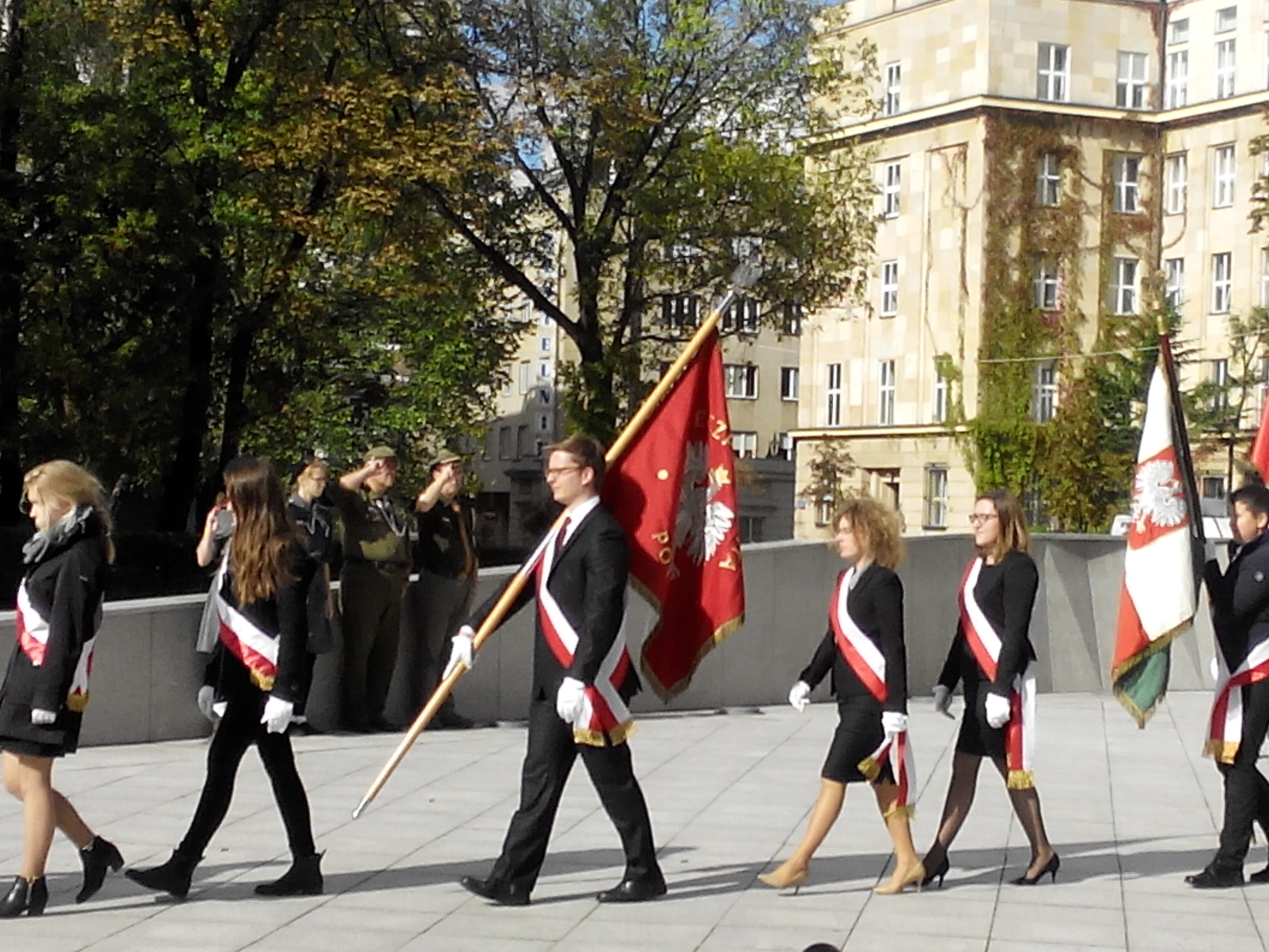 Poczet sztandarowy w składzie:  Anna Głąbska, Izabela Syta, Przemysław Tankiewicz, wystawiła XXVI Promocja „Tadeusz Mazowiecki” KSAP. W imieniu Szkoły wieniec złożyli: Jan Pastwa - Dyrektor KSAP oraz Mariusz Kujawski (XXVI Promocja) i Wojciech Szkotnicki (XXVII Promocja).