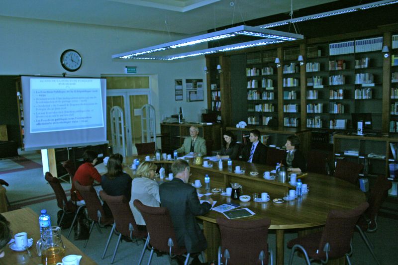 Prezentacja prof. Witolda Mikułowskiego umożliwiła gościom zapoznanie się ze środowiskiem polskiej służby cywilnej, jego specyfiką, problemami, kwestiami wymagającymi rozstrzygnięcia, jak np.: służba cywilna mianowana czy zatrudniana tylko na podstawie umowy o pracę? Jak powinny się kształtować relacje członków korpusu służby cywilnej ze światem polityki? Jak rozstrzygnąć od dawna czekającą na rozwiązanie sprawę neutralności politycznej urzędników?
