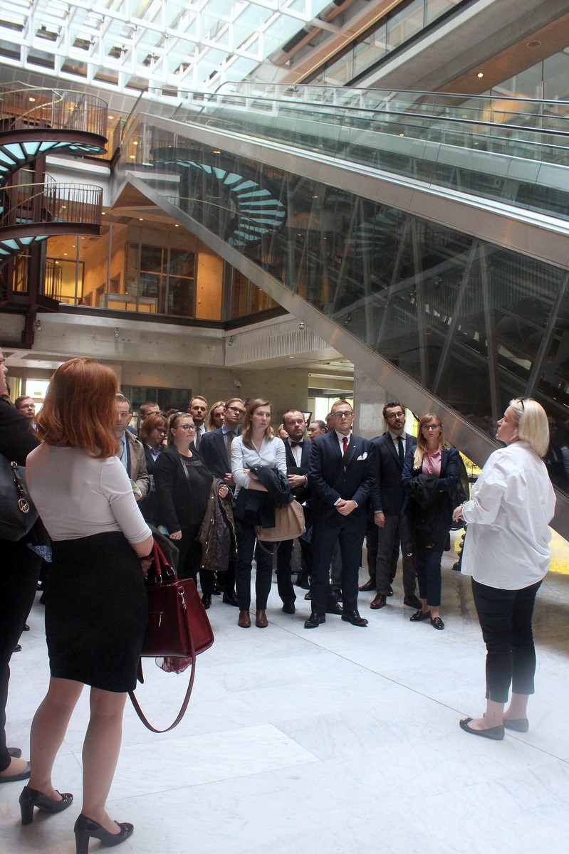 Szkolenie poprzedziło krótkie oprowadzenie po głównej części budynku giełdy, któremu towarzyszyła opowieść o rozwoju rynku kapitałowego w Polsce i historii obecnej siedziby giełdy.
