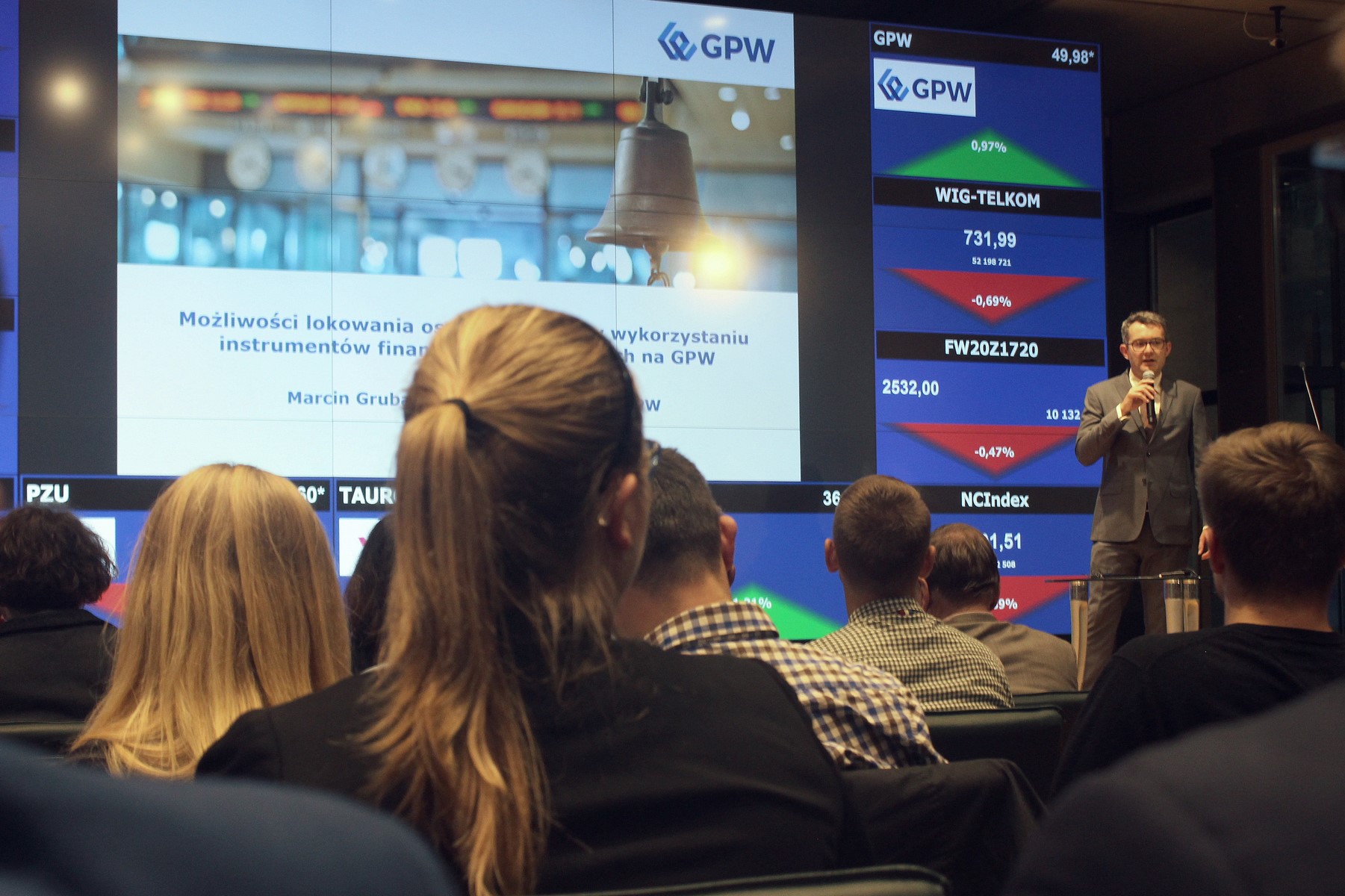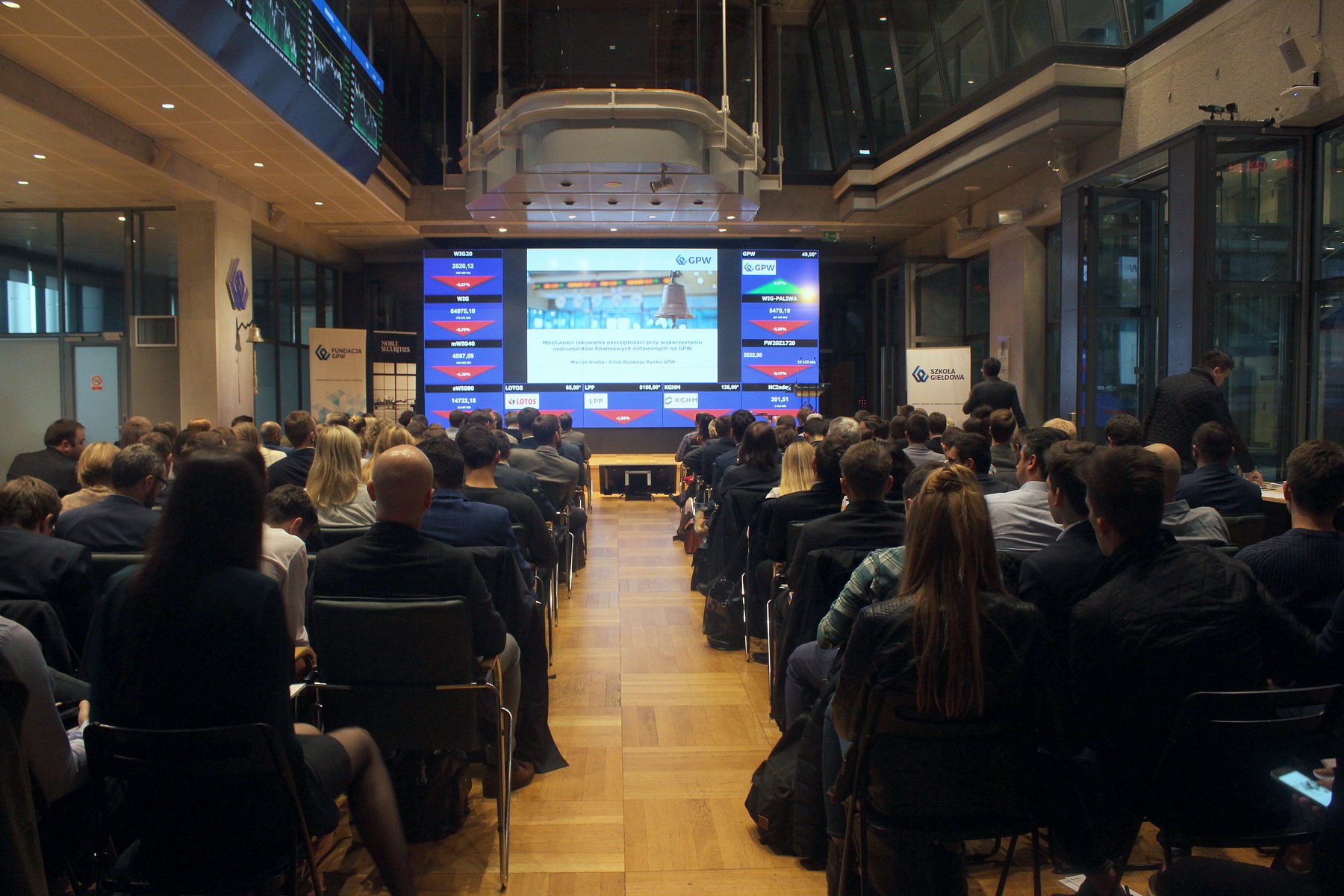 Marcin Gruba, Account Manager Działu Rozwoju Rynku GPW wygłosił wykład na temat podstaw rynku kapitałowego, w tym możliwości lokowania oszczędności przy wykorzystaniu instrumentów finansowych notowanych na GPW. Przedstawiony został również przebieg sesji giełdowej oraz zasady obsługi zleceń giełdowych.