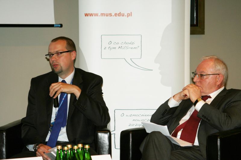 Jako kolejny wystąpił dr Adam Płoszaj (EUROREG), który przedstawił dokonania zespołu realizującego projekt MUS zebrane w drugiej, wydanej w ramach projektu, publikacji pod tytułem „Zarządzanie wiedzą w organizacjach publicznych – doświadczenia międzynarodowe”. Książka ta prezentuje 88 wybranych praktyk z dziedziny zarządzania wiedzą w organizacji, zaobserwowanych w administracjach 12 krajów OECD. Autorzy wybrali praktyki, co do których uznali, że mogą one posłużyć za wzór polskim organizacjom publicznym, kształtującym własne systemy organizacyjnego uczenia się.