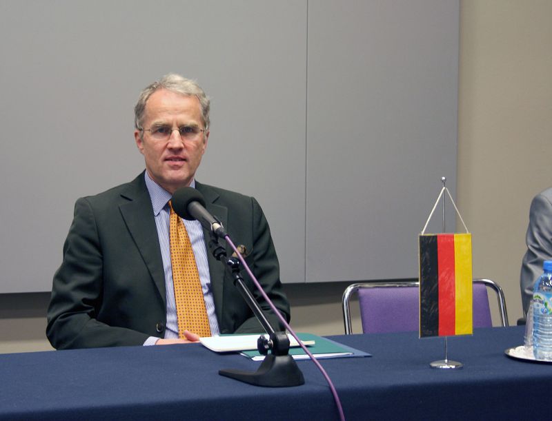 Ambasador wyraził zadowolenie z harmonijnie rozwijających się stosunków polsko-niemieckich. Dotyczy to zarówno relacji międzypaństwowych, jak i tak istotnych w dobie integracji relacji międzyludzkich. Nawiązał do swoich pierwszych wizyt w Polsce w epoce komunizmu i zmian jakich od tego czasu jesteśmy świadkami. Podkreślił również istotne znaczenie kontaktów gospodarczych i wzajemnego ścisłego powiązania obu państw.