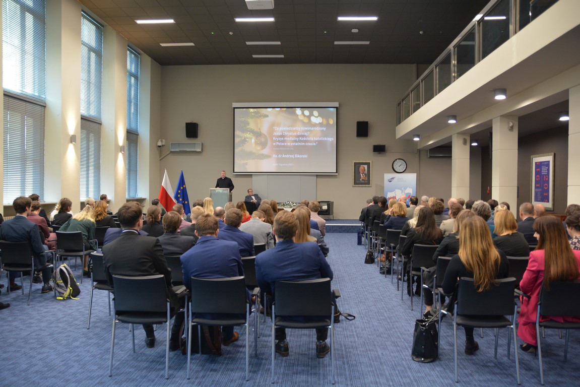 Okolicznościowy wykład „Co powiedziałby nowonarodzony Jezus Chrystus dzisiaj? Kryzys medialny Kościoła katolickiego w Polsce w ostatnim czasie" wygłosił ks. dr Andrzej Sikorski, kapłan Archidiecezji Warszawskiej, doktor nauk społecznych w dyscyplinie nauki o komunikacji społecznej i mediach. Ksiądz Sikorski studiował na Uniwersytecie Warszawskim oraz w Wyższym Metropolitalnym Seminarium Duchownym w Warszawie. Prezes Fundacji Być Bardziej, autor  projektów: "Rodzina Roku", "Dzwonek na obiad" oraz redaktor naczelny gazety "Niecodziennik". Obecnie pełni posługę w parafii pw. Zesłania Ducha Świętego w Warszawie.